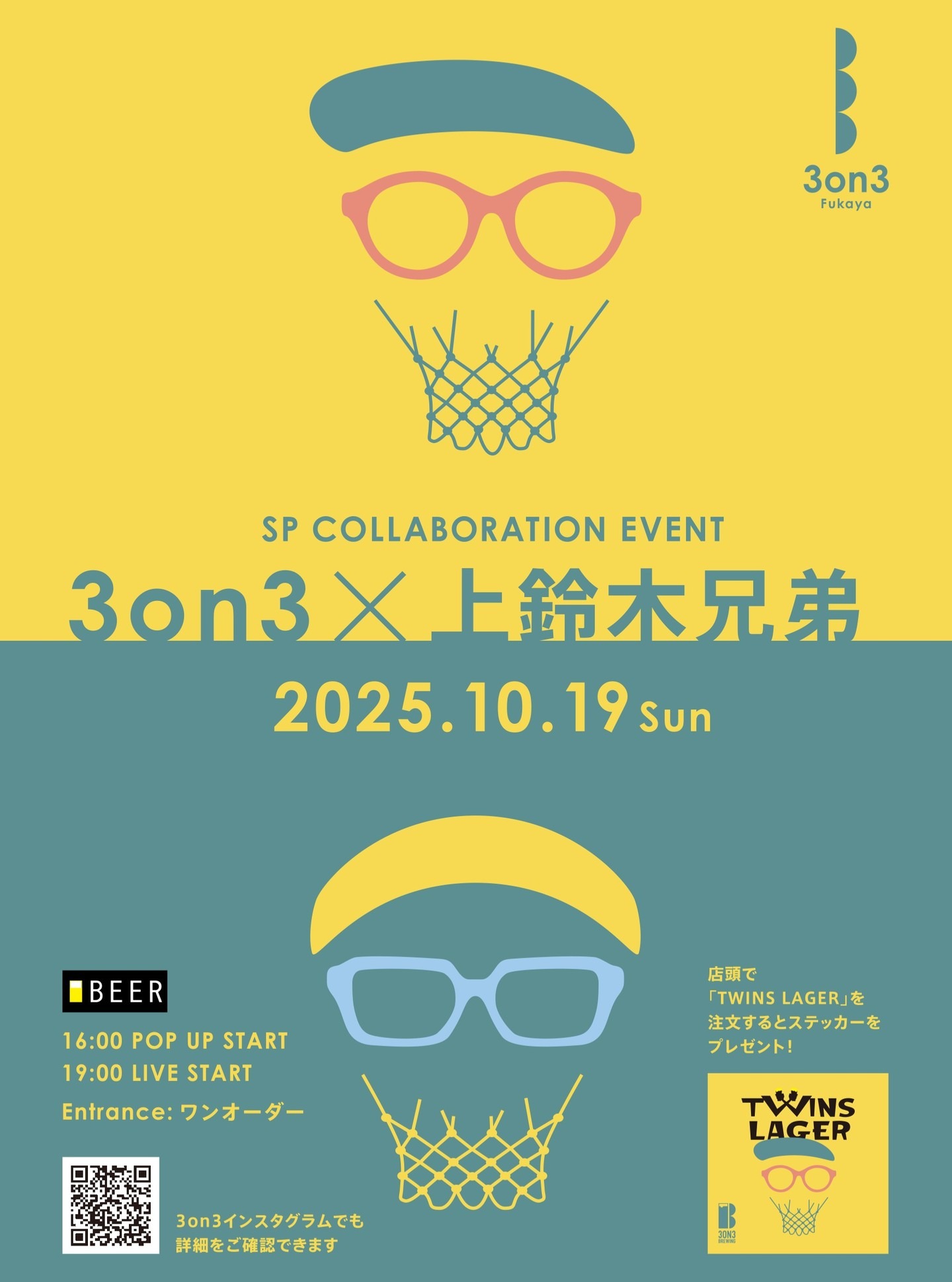 【BEER×LIVE】2025/10/19(日)@深谷市・3on3 Fukaya